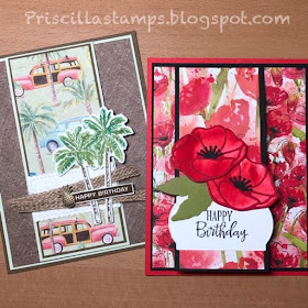 Then I added a different pattern of the same DSP, measuring 1-7/8" x 5". And finally I added the decorating--two poppies cut from Watercolor paper that I had sprinkled with Pigment Sprinkles, and the over-lay piece cut from Real Red. The leaves are Mossy Meadow, cut with the same Poppy Moments dies.