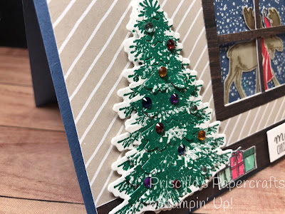 I cut a square in the "wall" and created a window using the In Good Taste patterned paper and Layering Square dies. I even put a Window Sheet in the window, making it look like glass! And look who's taking a stroll in the snow!