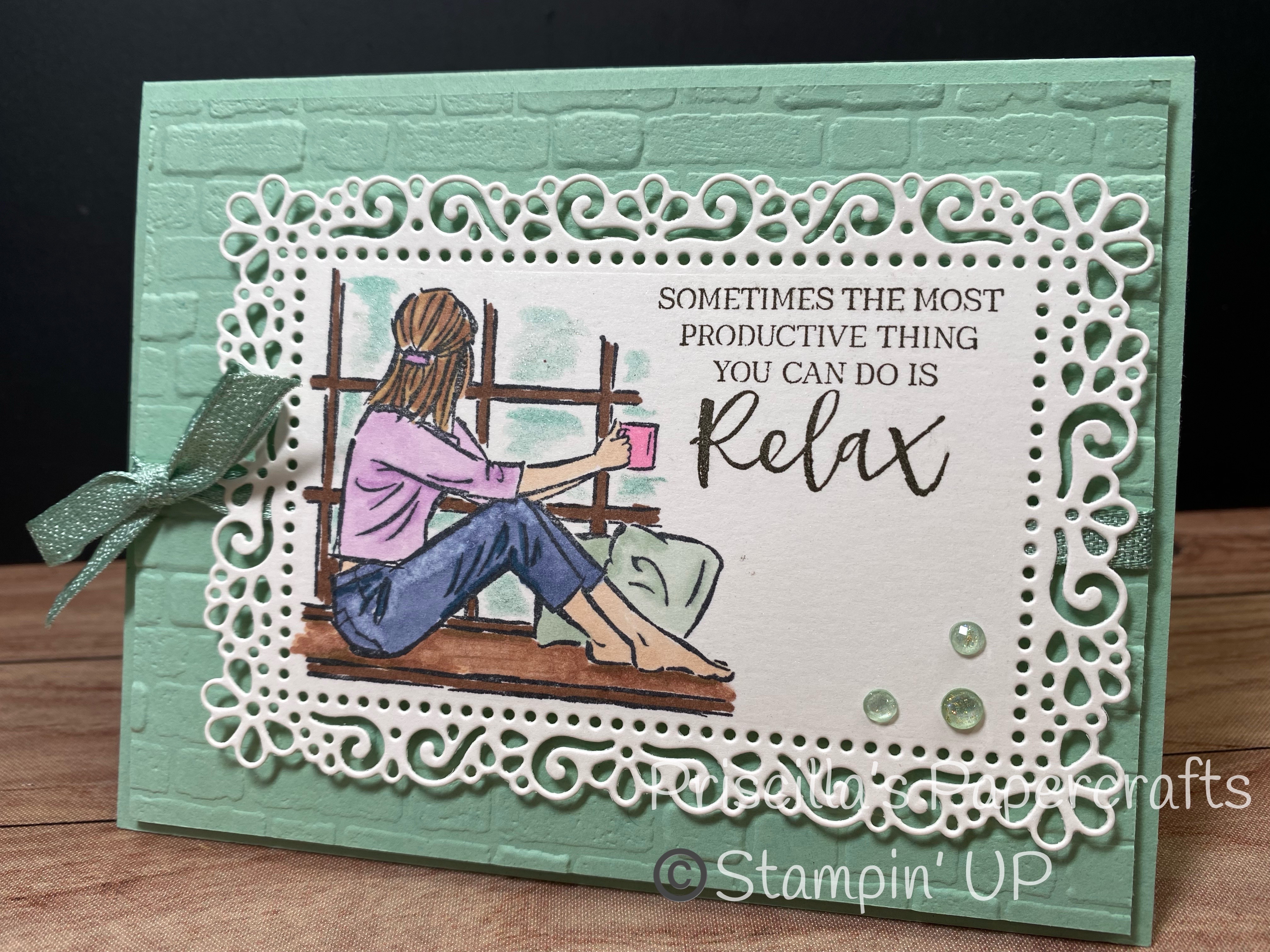 Relax...maybe that's the theme for my next few cards. Somehow I was drawn to that word as I created this week. So first up is relaxing in Mint Macaron: