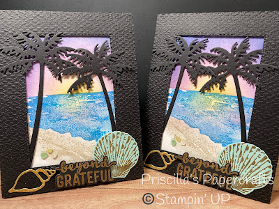 When Oceanfront made an appearance in the last catalog, and Paradise Palms was a current set, I made a similar card, so I pulled out these sets again (Paradise Palms is retired, but I still love the Palms dies).