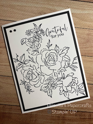 I stamped the large floral image in Tuxedo Black ink on a piece of Basic White cardstock cut to 3-3/4" x 5". I also added a greeting from the set.