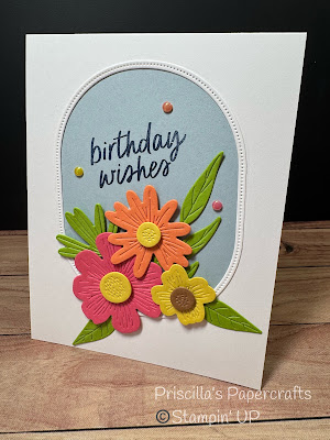 This card shows off all but one of the new In Colors. I'm also previewing a new die set, Impressions Abloom. AND some new embellishments - 2025-27 In Color Flat Pearls.